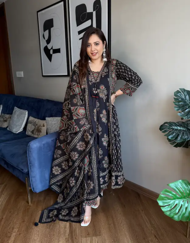 গলায় করা হয়েছে ইস্টনের কারুকাজ—যা আপনাকে দেবে অনন্য এক লুক!